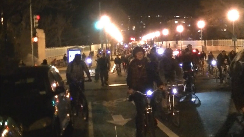 The November Bike Party crossing the bridge over Rock Creek above Adams-Morgan