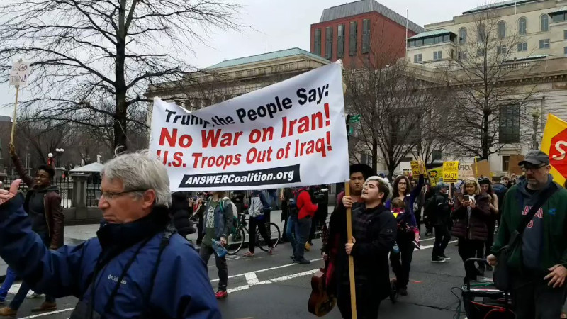 On the 4th of January, hundreds gathered in Lafayette Square to oppose Trump's reckless aggression and brewing war with Iran. At the conclusion of ANSWER's rally at the White House protesters marched on Trump Hotel. This was just one of dozens of simultanious antiwar protests across the US.