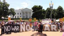 Donald Trump's recent round of warmongering against Iran drew antiwar protesters on the 23ed of July, demanding the threats and saber rattling stop all the way. Its not enough that Mr Trump's bone spurs may have stopped one airstrike, the whole mess has to be stopped now. Trump started this by withdrawing from the Iran nuclear deal