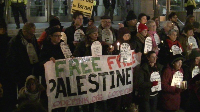 Vigil outside the Convention Center before the AIPAC attendees began to emerge