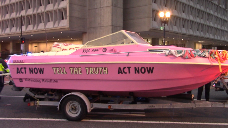 On Dec 7, 2021 social justice and climate groups launched waves of blockaders against AM rush hour traffic near the US Capitol. Cops managed to pre-empt Extinction Rebellion DC's boat, only to get Code Pink's Peace Tank blocking Independence Ave anyway. Other blockades hit Penn Ave NW and SE, Mass Ave NE, and there was even a report on radio of traffic issues near the White House.