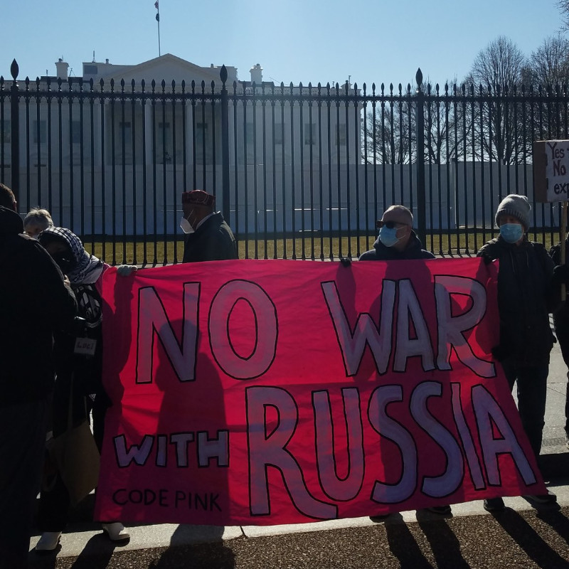 On the 27th of January, Code Pink held a mid-day protest in front of the White House against increasingly likely war in Ukraine. The fact that both the US and Russia posess nuclear weapons greatly increases the stakes if both countries commit troops to the same battlefield.