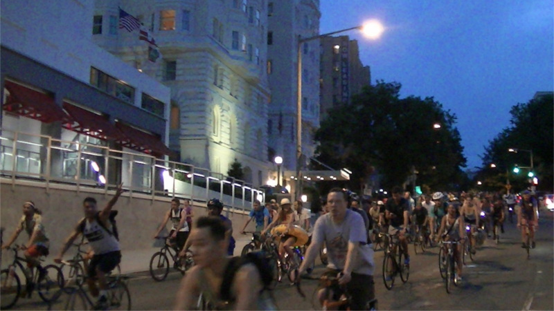 On the the 8th of July, the DC Bike Party took to the streets once again, now having been in existance for four years. Although not the largest ever, this was a very large bike party of hundreds of riders. This was also roughly the 4th anniversary of the first DC Bike Party In this ride, a few riders wore signs saying things like "Black Lives Matter" and "Disarm the police."